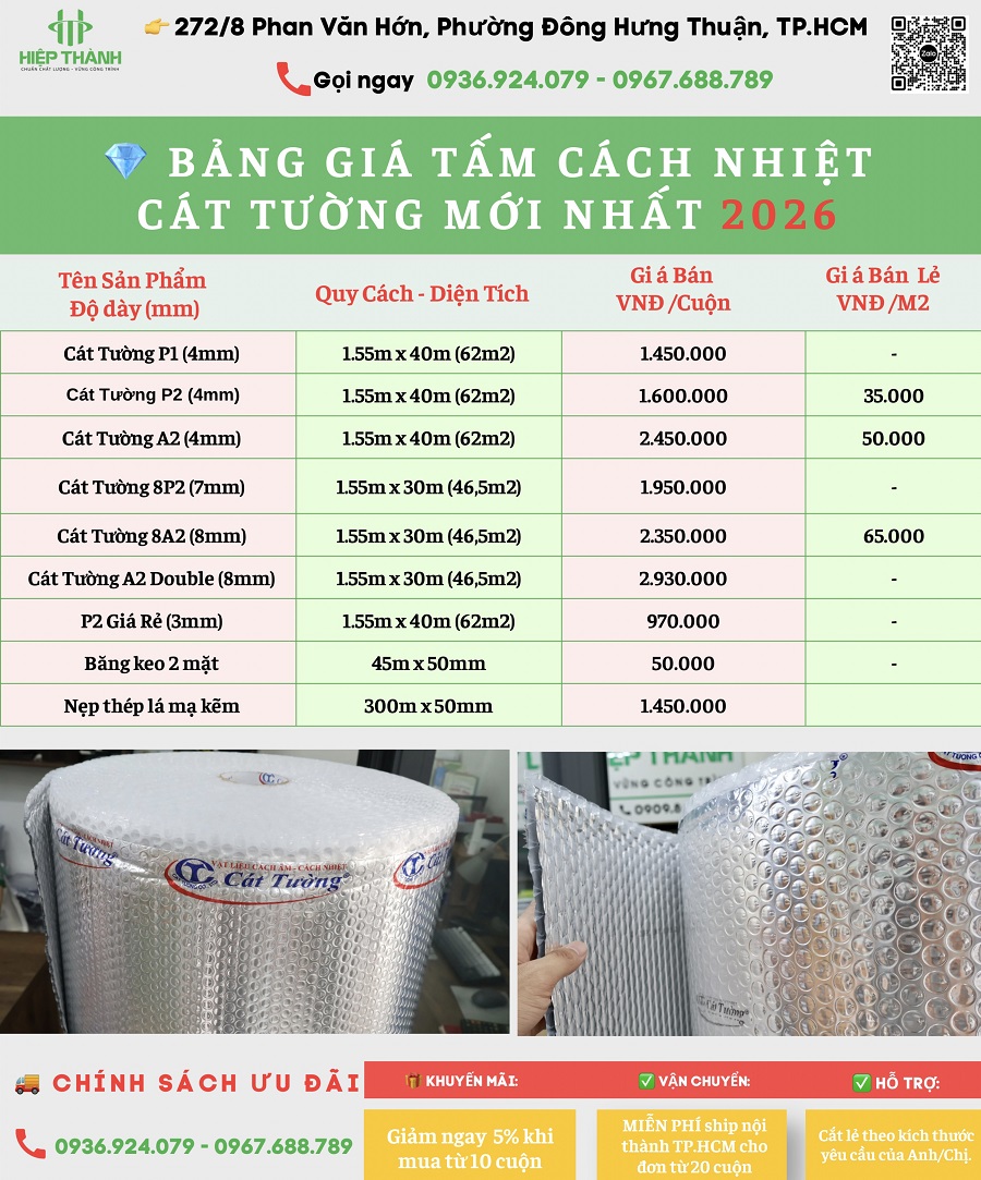 💰 BẢNG GIÁ TẤM CÁCH NHIỆT CÁT TƯỜNG (MỚI NHẤT 2026)