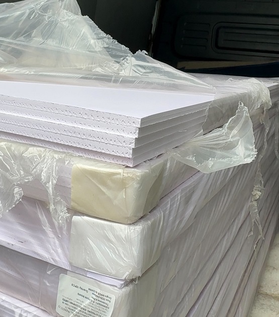 Mình đã đặt mua một kiện 15 tấm fomex dày 2mm, hàng giao nhanh vì mình đặt giao ở Sài Gòn. Sản phẩm nhìn chung giống như hình trong trong bài viết, màu trắng mới, đúng thông số kích thước và có khối lượng nhẹ nên dễ di chuyển trong lúc thi công.