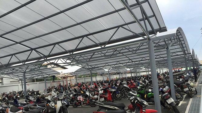 Công nghiệp: Mái che lối đi bộ, mái che nhà xe nhân viên, vách ngăn văn phòng/nhà xưởng.